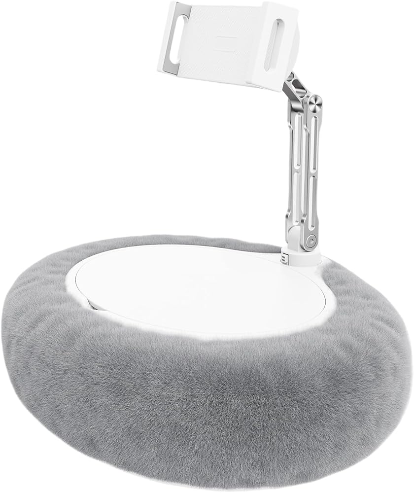 حامل وسادة لجهاز Kindle Tablet iPad، حامل هاتف محمول من القطيفة مع وعاء للوجبات الخفيفة مع غطاء، متوافق مع هاتف 4.7 بوصة - 13 بوصة، جهاز لوحي، iPad، iPhone، Google، Kindle، Samsung (رمادي) in Kuwait