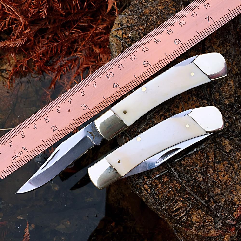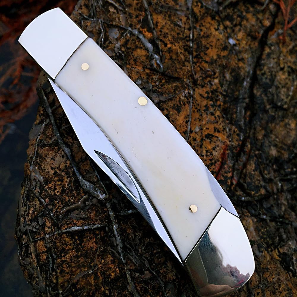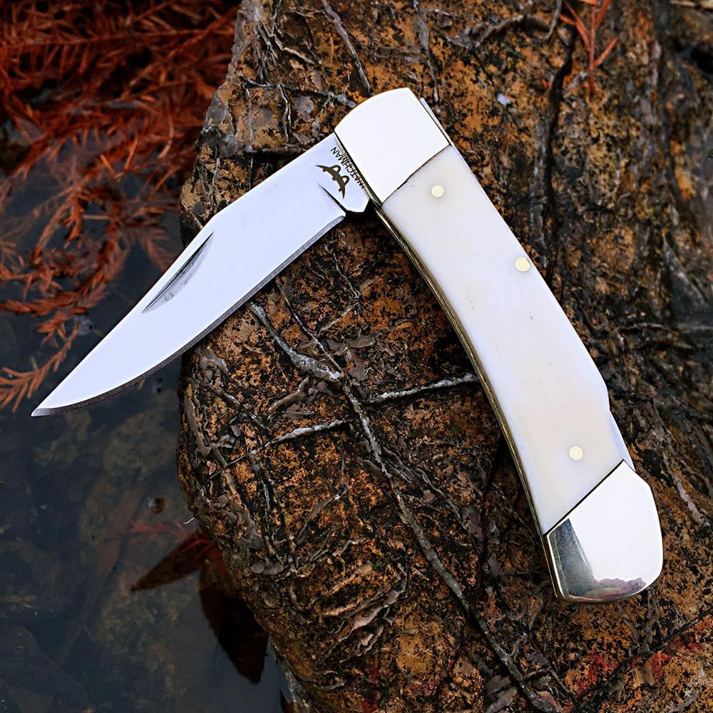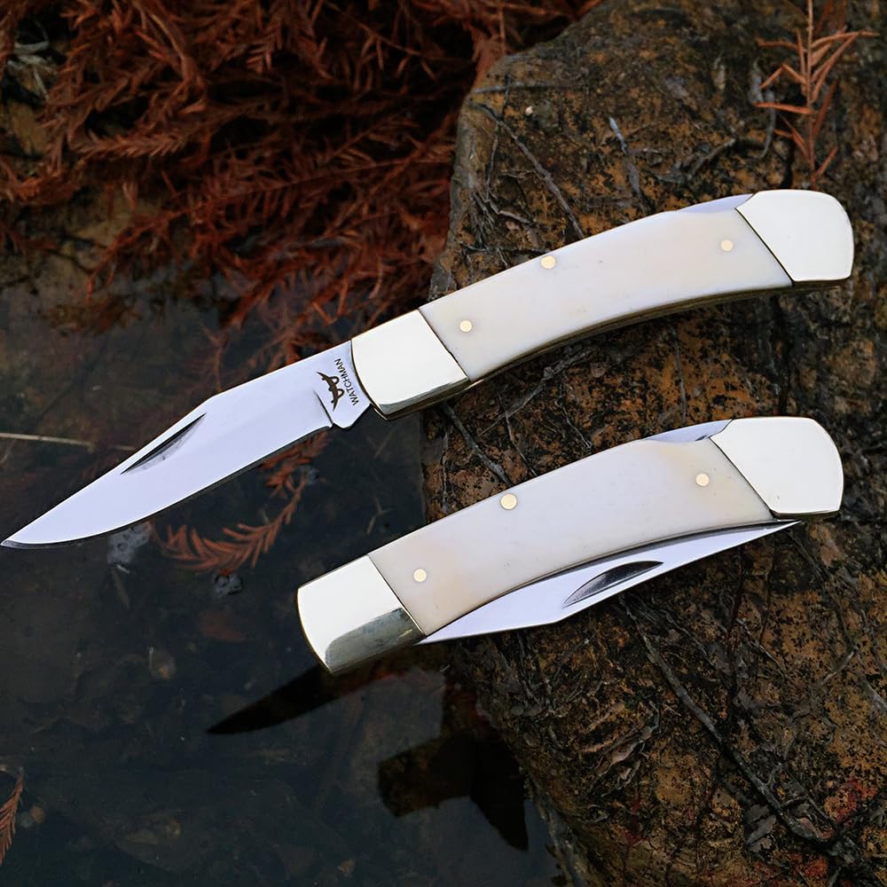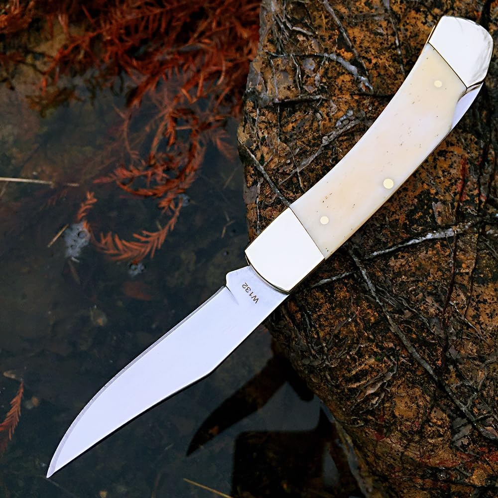 Watchman W132 سكين جيب قفل خلفي سكين جيب قابل للطي مع موازين مقبض عظمية أصلية، أبيض