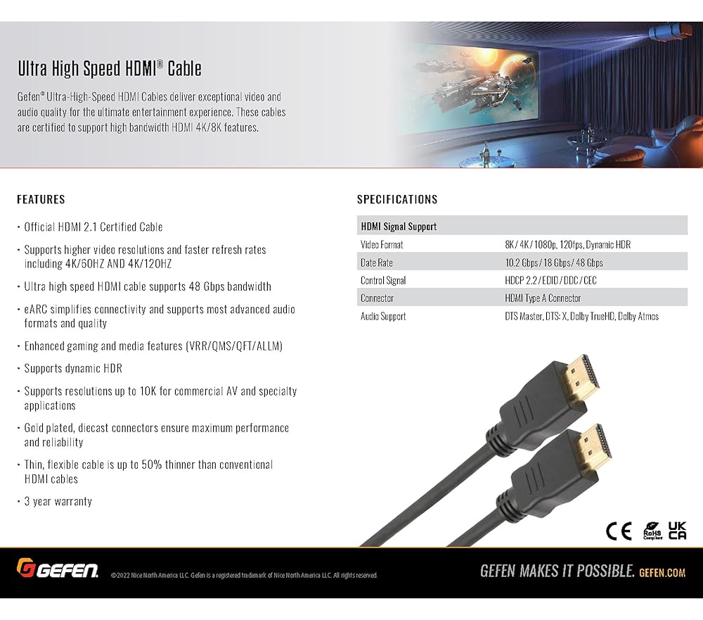 سرعة فائقة معتمدة تبلغ 48 جيجابت في الثانية: لا تدع الكابل الخاص بك يمثل عنق الزجاجة. هذا كبل HDMI عالي السرعة معتمد يدعم عرض النطاق الترددي الكامل البالغ 48 جيجابت في الثانية اللازم لـ Dynamic HDR والحد الأقصى من الدقة البصرية في كل لعبة