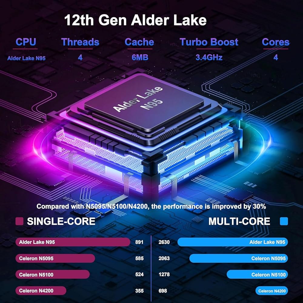 • ​​​​​​​​💻أداء عالي: يستخدم الكمبيوتر المحمول أحدث معالج Alder Lake N95 من الجيل الثاني عشر بتردد متدفق يبلغ 3.4 جيجا هرتز، و4 نوى/4 خيوط، وذاكرة تخزين مؤقت سعة 6 ميجابايت. تم دمج رسومات UHD بسرعة تصل إلى 1200 ميجا هرتز للحصول على أداء رسومات أقوى. إنها تجربة مستخدم سلسة للعمل والدراسة والترفيه.