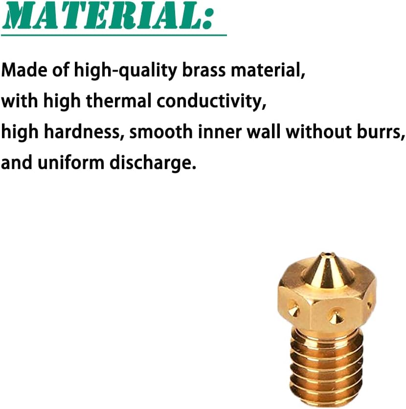 فوهات طابعة ثلاثية الأبعاد، M6 0.4 مم رأس طباعة فوهة نحاسية لاستبدال خيوط 1.75 مم E3D V5-V6 ثلاثية الأبعاد (20 قطعة)