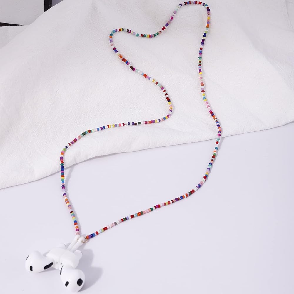 EGEN خرز بذور زجاجي ملون مغناطيسي مضاد للضياع، سلسلة سلسلة سلسلة لـ Airpods Pro1 2 3، 72 سم (خرز بذور زجاجية ملونة)