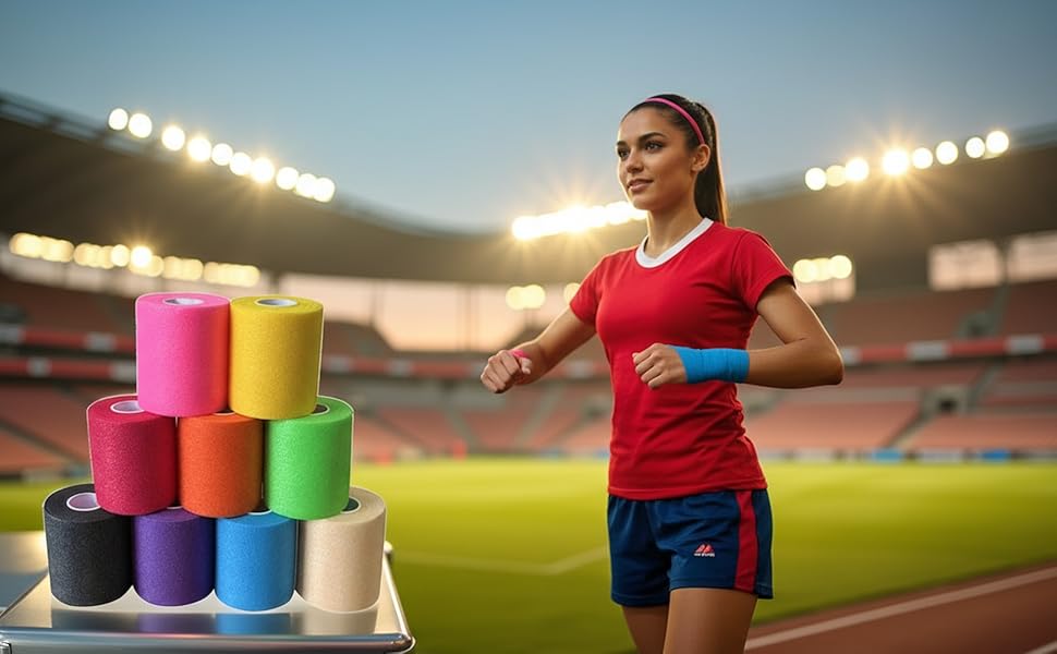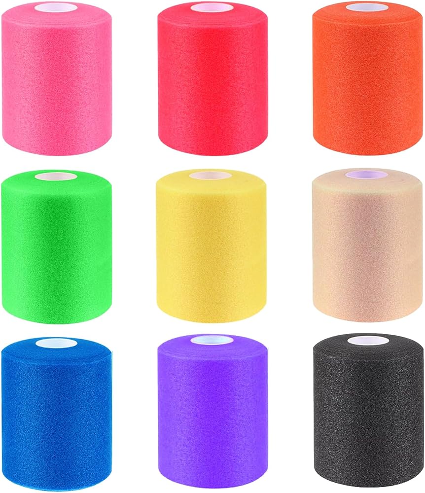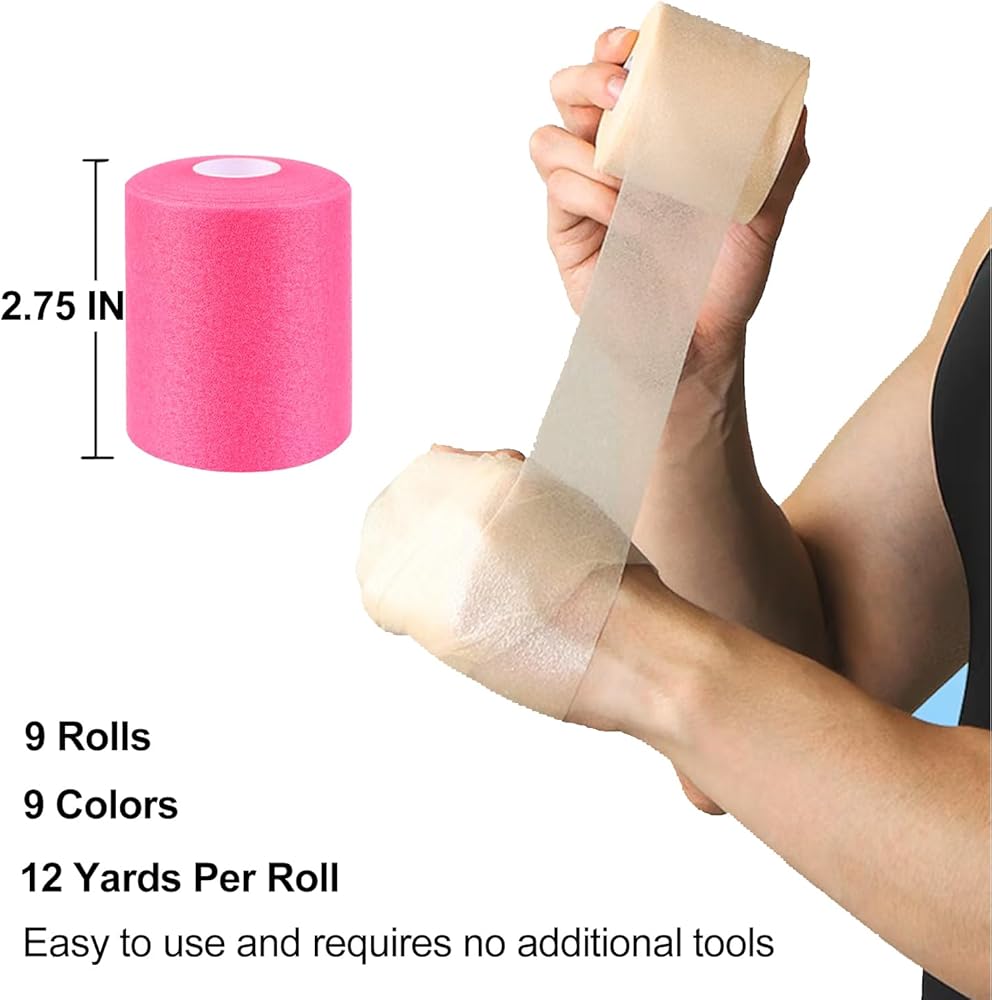 محتويات المنتج: تتضمن هذه المجموعة 9 لفات من التغليف المسبق، قياس كل منها 2.75 بوصة × 12 ياردة. تضيف الألوان المفاجئة المتنوعة عنصرًا ممتعًا وتحفيزيًا لإعدادك الرياضي