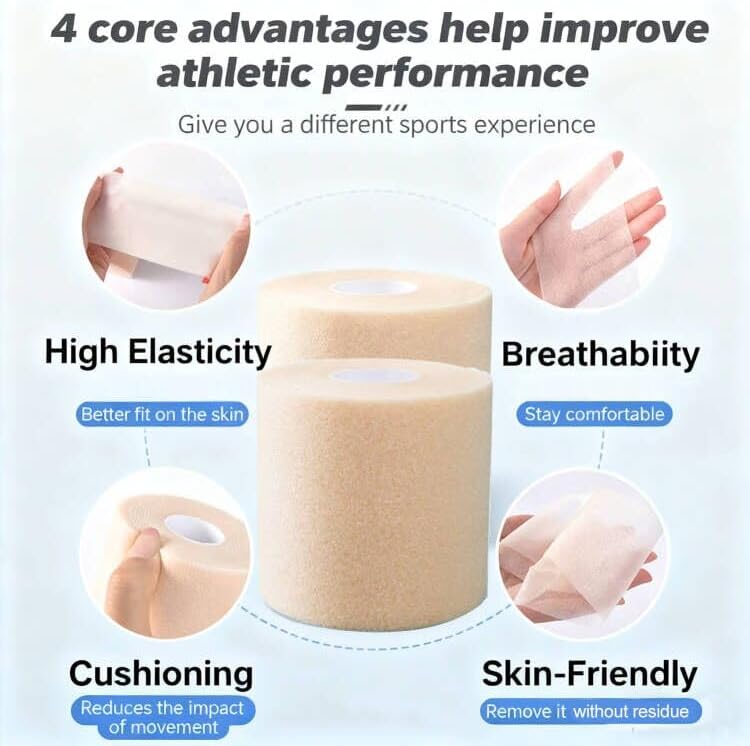 التحكم المعزز في المعدات: بالإضافة إلى ذلك، يمكن لفه حول مقابض المعدات الرياضية المختلفة (مثل مضارب التنس ونوادي الجولف) لإنشاء سطح مبطن وغير قابل للانزلاق، مما يحسن الإمساك والراحة.