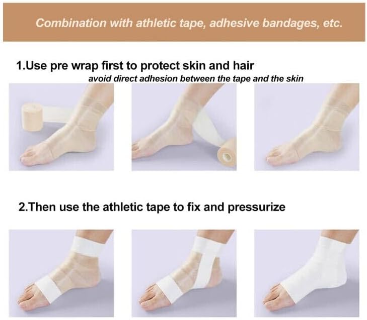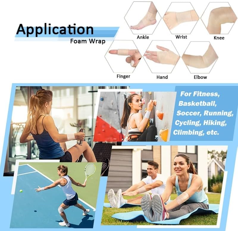 حماية مريحة وصديقة للبشرة: يعمل اللف المسبق مع الشريط الرياضي. يعمل اللف المسبق CLOOFLAR كطبقة لطيفة ومسامية تحت الشريط الرياضي. يمكن استخدام اللف المسبق لتغليف المعصمين والرأس والكاحلين والركبتين والمرفقين. لتوفير توسيد ودعم ممتازين لمفاصلك وتقليل الإصابات المحتملة أثناء ممارسة الرياضة.
