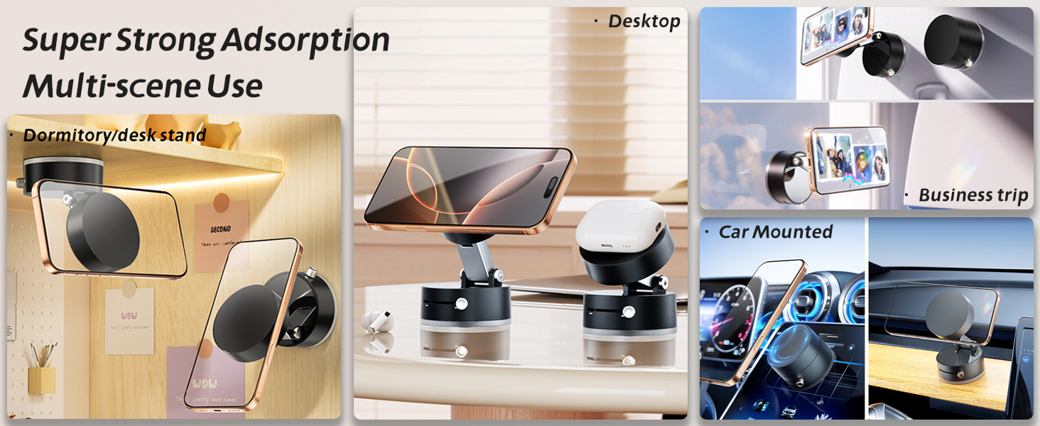 【تعدد الاستخدامات 】 - يعمل حامل الهاتف المغناطيسي المفرغ هذا على الزجاج الأمامي ولوحات المعلومات (مع وسادة مضادة للانزلاق)، ومرايا صالة الألعاب الرياضية، والمكاتب المكتبية، وحتى وحدات التحكم المركزية في تيسلا. يمكن طيه بشكل مسطح لسهولة التخزين في حجرة القفازات الخاصة بك.