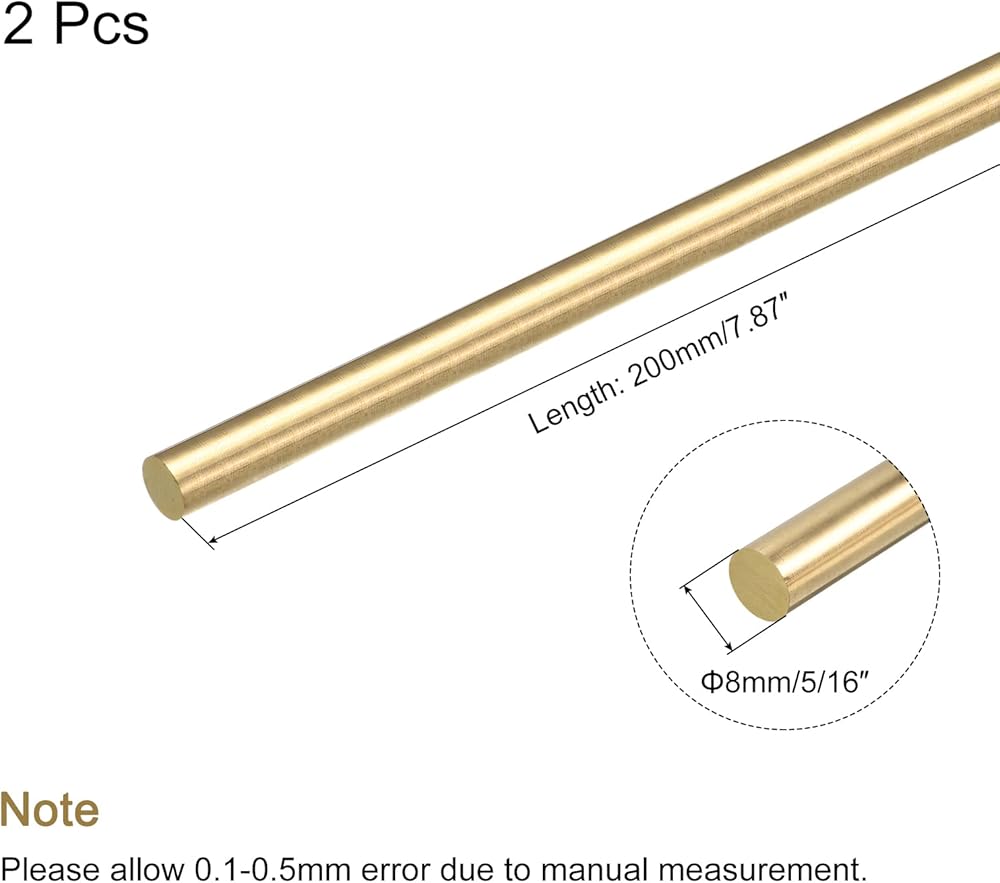 • حزمة من قطعة واحدة من قضيب مخرطة قضيب مستدير من النحاس الصلب. الطول: 200 مللي متر/7.87 بوصة ؛ القطر: 8 مللي متر/5/16 بوصة