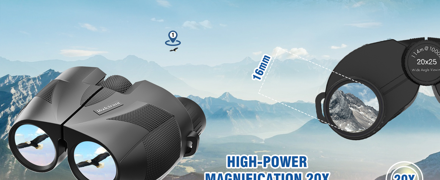 【مناظير للبالغين عالية الطاقة】تتميز هذه المناظير بتكبير 20x، وعدسة موضوعية 25 مم ومجال رؤية واسع، 383t/1000yds وتوفر دقة عالية دون تغيير اللون أو صورة غير واضحة. لذلك ستتمكن من مراقبة الكثير دون تعديل موضعها فعليًا.