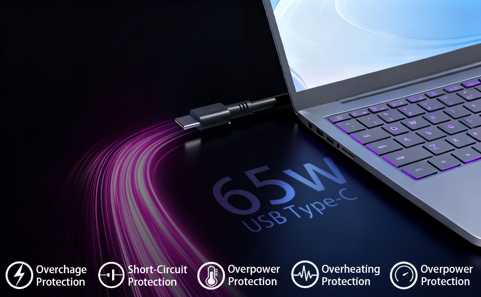 • ما تحصل عليه: 1 × محول طاقة 65 وات، 1 × سلك إمداد الطاقة