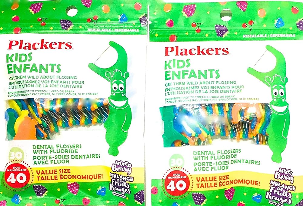Getting children to floss isn't just another task with Plackers Kids floss sticks. Innovative floss pads make flossing very easy with the unique and colorful one that is comfortable and fun for children of all ages to use, plus they are ideal for building healthy dental hygiene habits from an early age. Plackers Kids flossers contain fluoride to strengthen enamel and promote healthy teeth, are BPA free, and are made with Super Tuffloss, the strongest dental floss in the world, designed not to grind, break or stretch while providing a seamless and comfortable experience over and over again. Without a doubt, Fruit Smoothie Swirl flavored dental floss always brings children back for me and leaves their mouths super clean, fresh and tasty. Plackers double grip dental floss for children are ideal when you're on the go and don't have your child's toothbrush, toothpaste or a sink easily available. Place a package in the car, store one in your bag or handbag, backpack or travel bag and, of course, in our functional Plackers Kids dental floss holder on your children's bathroom vanity. Since pioneering the first patented dental floss more than 40 years ago, Plackers has helped to brighten the smiles of millions with our complete suite of dental products: we know that your smile is important to you, so let us help you keep it clean and healthy.