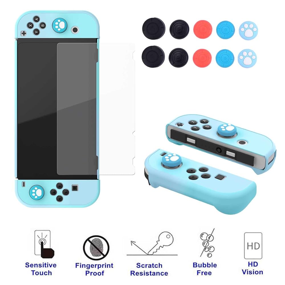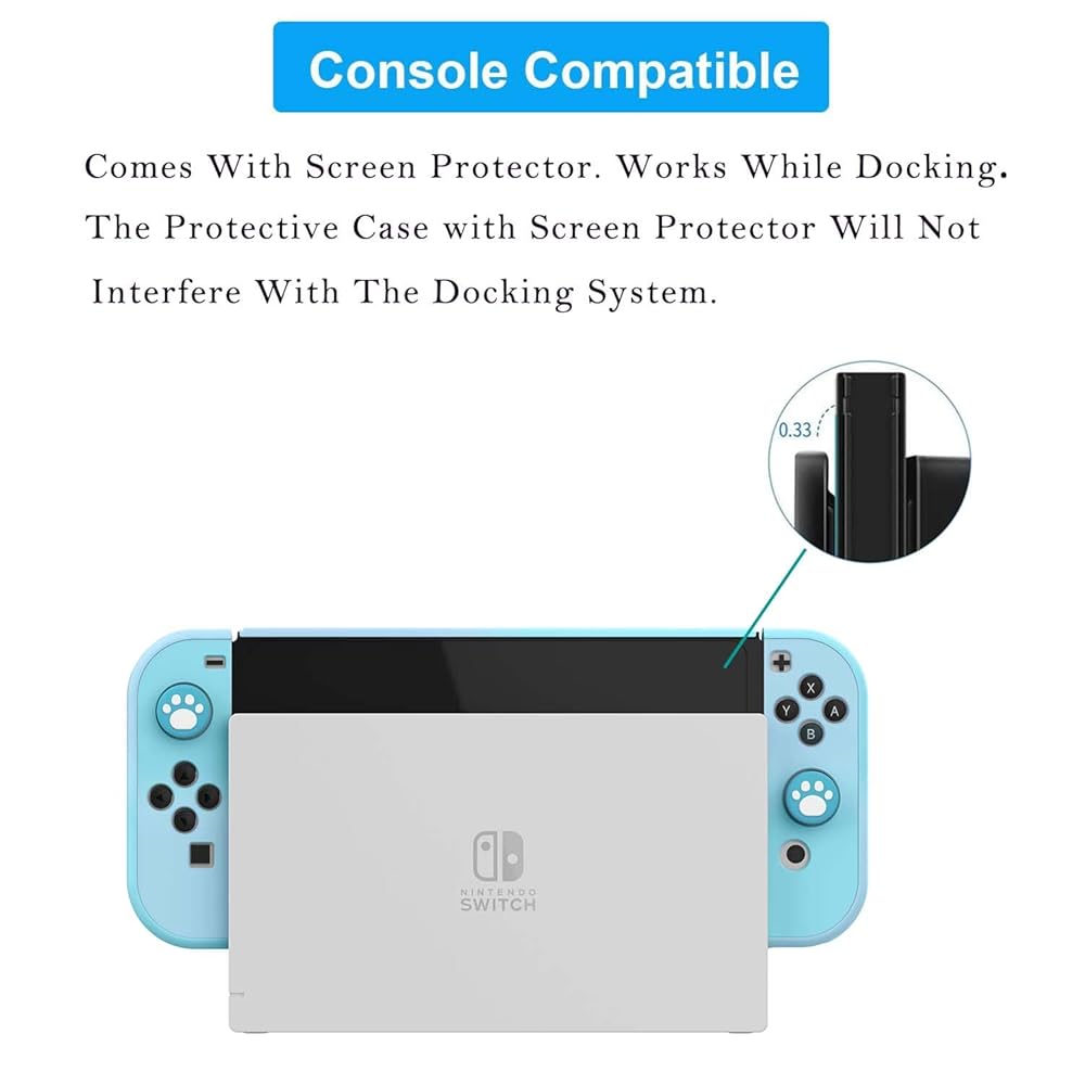 حافظة COMCOOL قابلة للإرساء لجهاز Nintendo Switch Oled - [حماية من السقوط من الدرجة العسكرية بطول 9 أقدام] [مع واقي شاشة من الزجاج المقسى ومقابض الإبهام] غطاء واقٍ لجهاز Nintendo Switch Oled - أزرق سماوي