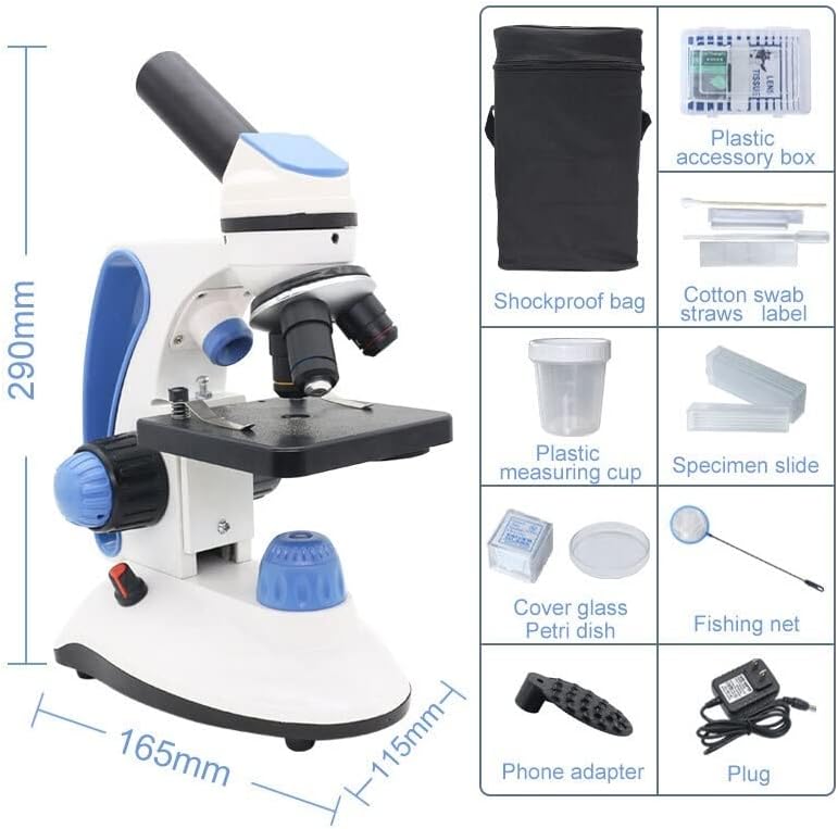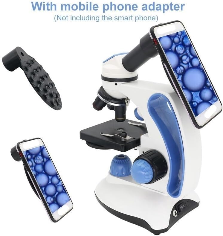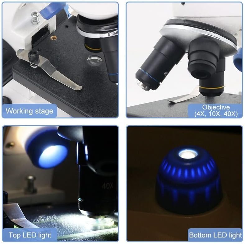 طقم مجهر 40X-2000X مجهر أحادي العين، مع مصابيح علوية/سفلية قابلة للتعديل ومحولات عدسة مجهر بإضاءة LED