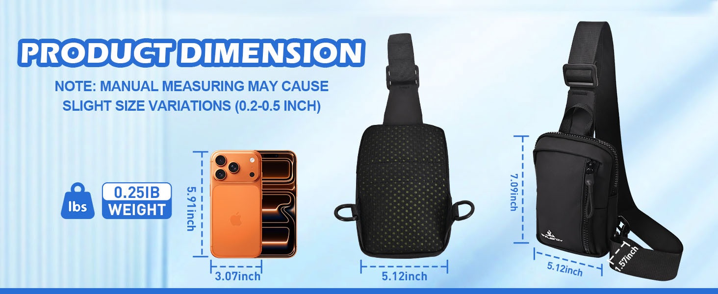 【حجم صغير وحزام قابل للتعديل】: حجم حقيبة كروس للرجال هو 5.11 بوصة طول × 1.57 بوصة عرض × 7.08 بوصة ارتفاع. تتميز هذه الحقيبة الصغيرة بحزام مريح بعرض 2.5 بوصة مع لوحة خلفية شبكية مسامية لتوفير الراحة طوال اليوم.