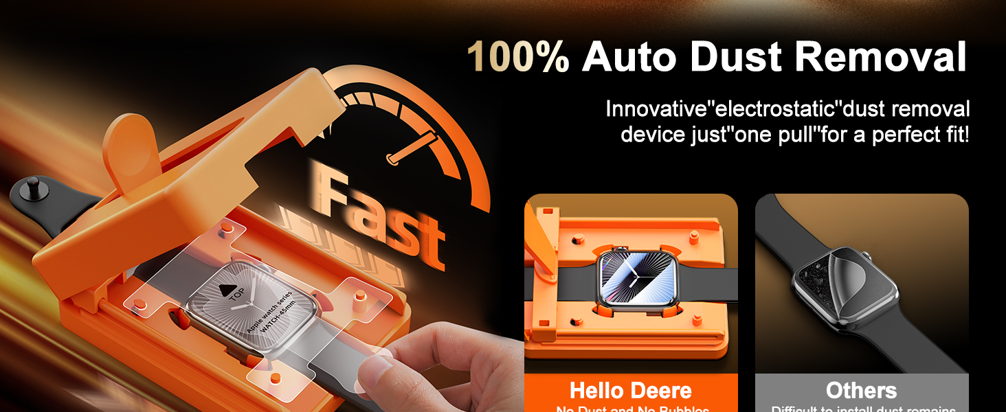 【تقنية المحاذاة التلقائية】: يمكن تركيبها مباشرة دون إزالة حزام الساعة. ما عليك سوى التغطية والسحب، وسيقوم Apple Watch Protector تلقائيًا بمحاذاة فقاعات الهواء وتفريغها بشكل طبيعي بسرعة. سهل الاستخدام، لا تقلق بشأن الفقاعات. ننصحك بمشاهدة فيديو التثبيت الخاص بنا قبل التثبيت، ويمكنك الانتهاء في غضون ثوانٍ. لا داعي للقلق بشأن لصق الغشاء