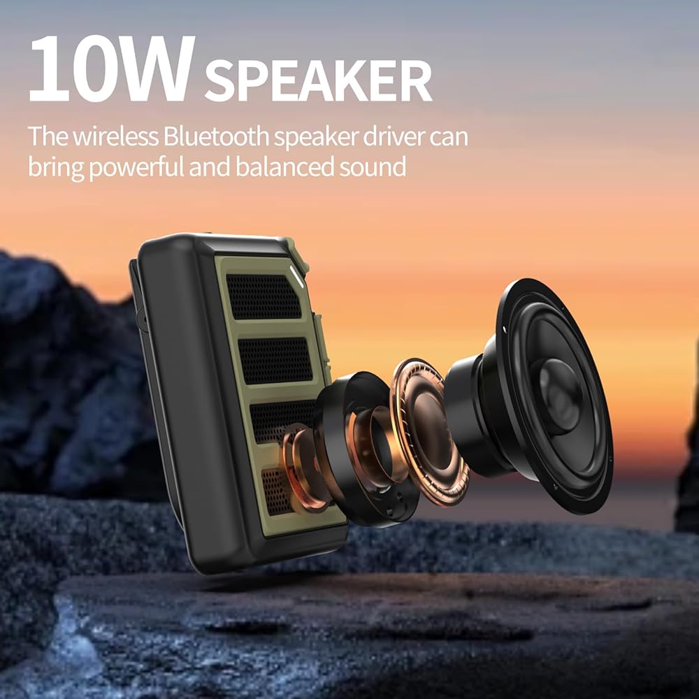صوت غامر: يتميز مكبر الصوت المحمول الذي يعمل بتقنية البلوتوث بجودة صوت عالية الدقة بقدرة 10 وات، والتي يمكن أن توفر تأثيرات استريو كاملة وملاحظات عالية واضحة وملاحظات منخفضة قوية. بغض النظر عن مكان وجودك، يمكنك الاستمتاع بالموسيقى أو الملفات الصوتية أو تجربة الاتصال بدون استخدام اليدين.