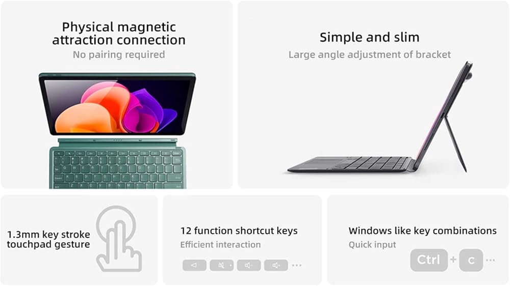 SENSITIVE TOUCHPAD: highly responsive touchpad on this cordless keyboard supports multitouch- control, simplifying navigation and on your Xiaoxin Pad Pro 2022.