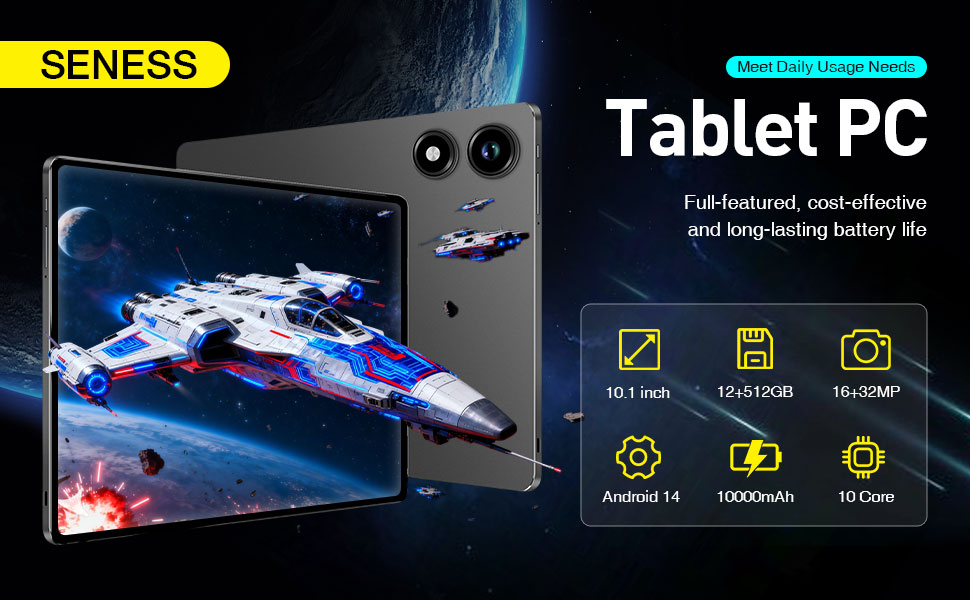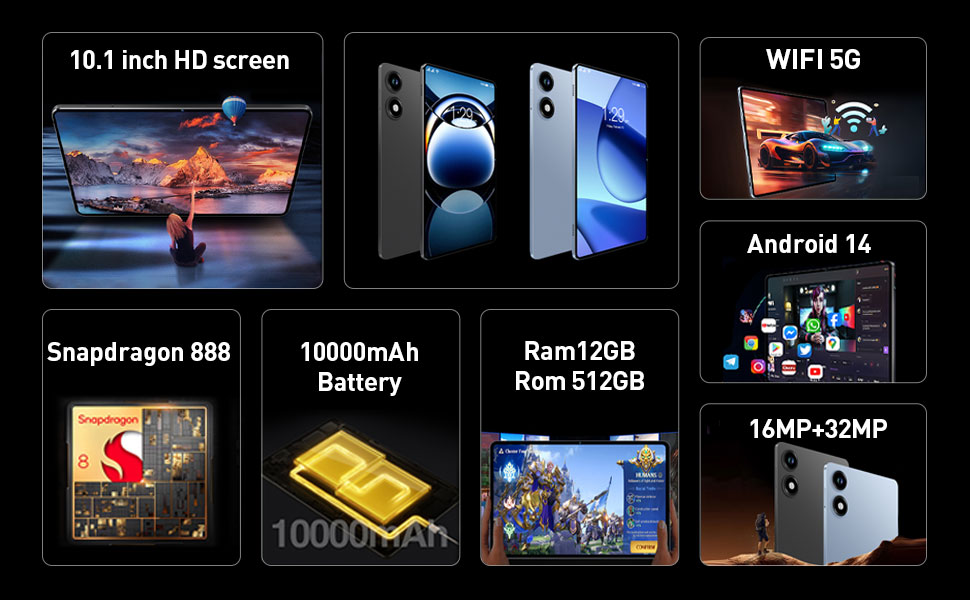 تابلت Android 14 مقاس 10 بوصة، وذاكرة وصول عشوائي 12 جيجابايت + ذاكرة تخزين داخلية 512 جيجابايت، ومعالج 10 نواة، وشبكة 5G وواي فاي، وشاشة FHD، وكاميرا مزدوجة 16 ميجابكسل + 32 ميجابكسل، وعمر بطارية طويل 10000 مللي أمبير في الساعة للعمل والترفيه (أزرق)
