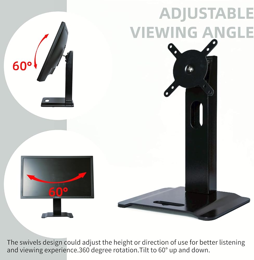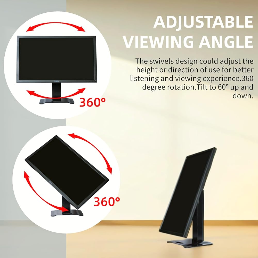 حامل سطح المكتب المعدني متوافق مع Echo Show 15 (الجيل الأول والثاني) Show 21 حامل دوار قابل للتعديل، دوران 360 درجة زاوية إمالة 60 درجة، مناسب للشاشات العالمية 13-32 بوصة (أسود)