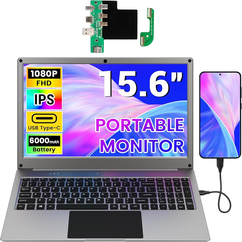 جهاز كمبيوتر محمول الكل في واحد: أكثر من مجرد شاشة! يدمج هذا الجهاز المبتكر شاشة FHD IPS مقاس 15.6 بوصة ولوحة مفاتيح كاملة ولوحة لمس متعددة الإيماءات ومكبرات صوت استريو وبطارية كبيرة في وحدة واحدة أنيقة. إنه يحول أجهزتك المتوافقة إلى كمبيوتر محمول فوري.