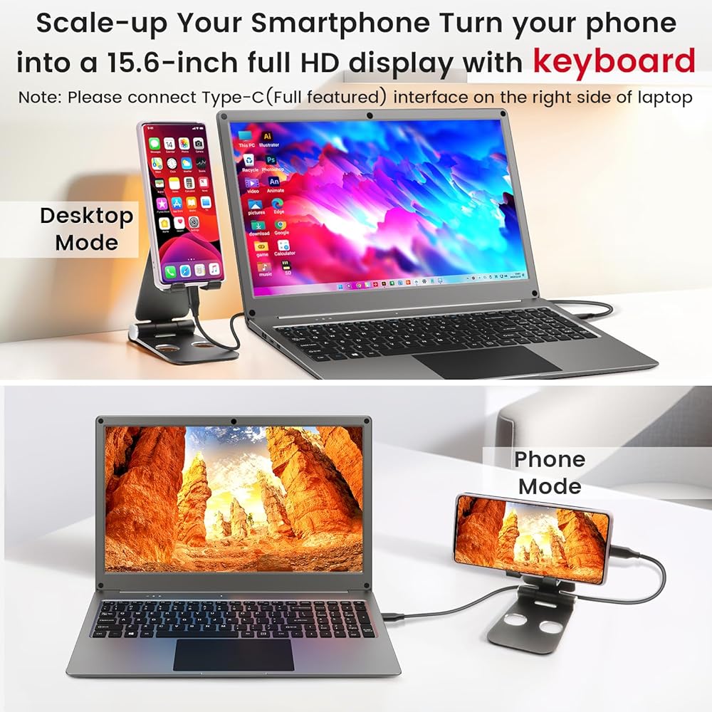 أطلق العنان لإمكانات هاتفك: تعمل هذه الشاشة المحمولة المزودة بلوحة Kyboard على تحويل هاتفك الذكي المتوافق إلى كمبيوتر محمول منتج. استمتع بتجربة وضع سطح المكتب (على سبيل المثال، Samsung DeX) أو انعكاس الشاشة على شاشة كبيرة مقاس 15.6 بوصة لإجراء مكالمات الفيديو ورسائل البريد الإلكتروني والتصفح، مما يعزز كفاءة هاتفك المحمول بشكل كبير.
