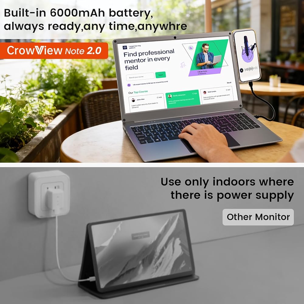 شاشة محمولة مع لوحة مفاتيح، شاشة لابدوك 15.6 بوصة مع بطارية مدمجة 6000 مللي أمبير في الساعة، شاشات CrowView Note 1080P FHD USB C متوافقة مع RPi5، الكمبيوتر الشخصي، الهاتف، Mac، وحدة التحكم في الألعاب