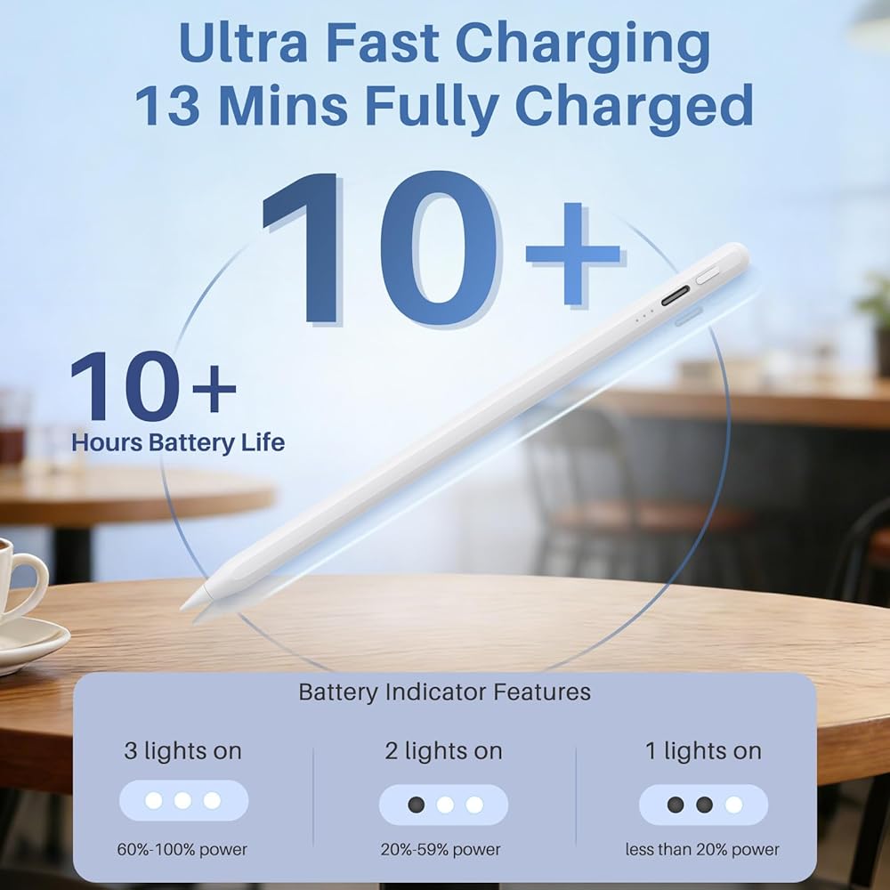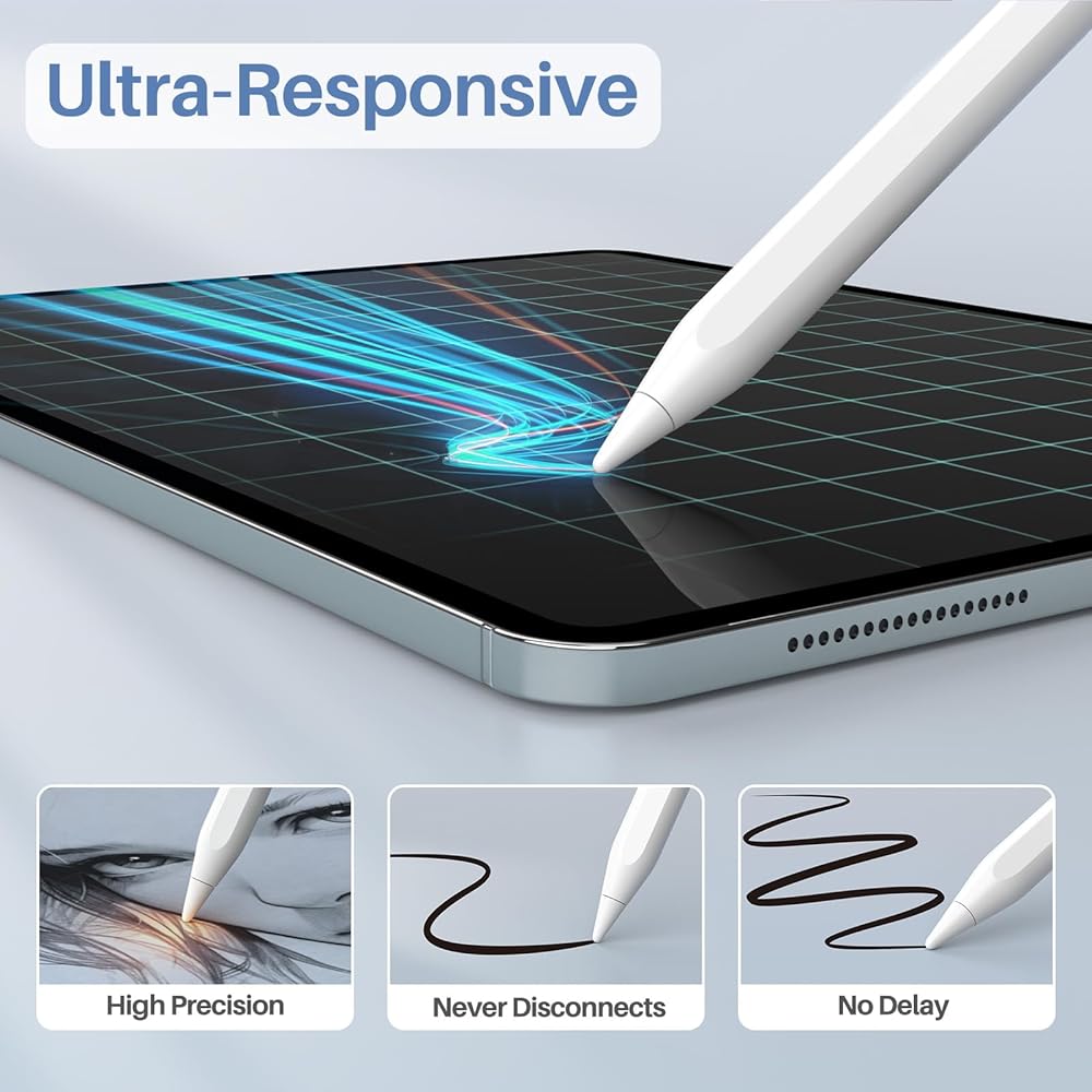 مخصص لأجهزة iPad 2018-2024: قلم iPad هذا متوافق مع iPad Air 11 بوصة و13 بوصة (M2)، iPad Pro 11 بوصة (M4)، iPad Pro 13 بوصة (M4)، iPad Pro 13 بوصة (3rd/4th/5th/6th)، iPad Pro 11 بوصة (1st/2nd/3rd/4th)، قلم لجهاز ipad 6th/7th /الجيل الثامن/التاسع/العاشر، iPad Mini 6th/5th، iPad Air الجيل الخامس/4th/3rd. يرجى التأكد من طراز iPad الخاص بك قبل الطلب