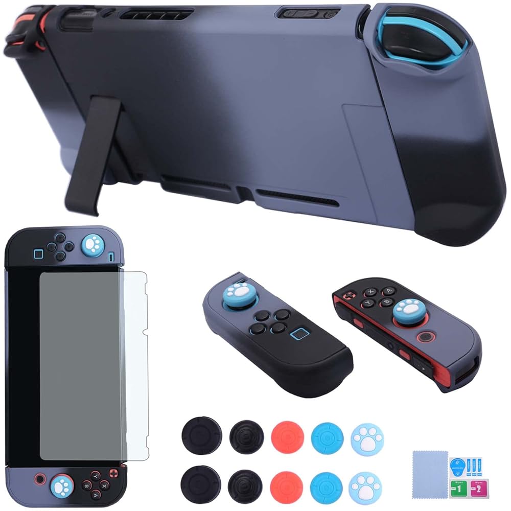 • PERFECT MATCH: It's easy to get on and off. Designed with specially placed cut-outs, supports access to all parts of the switch and allows for access to all buttons. The Switch protective case with screen protector will not interfere with the docking system, also compatiable with original kickstand