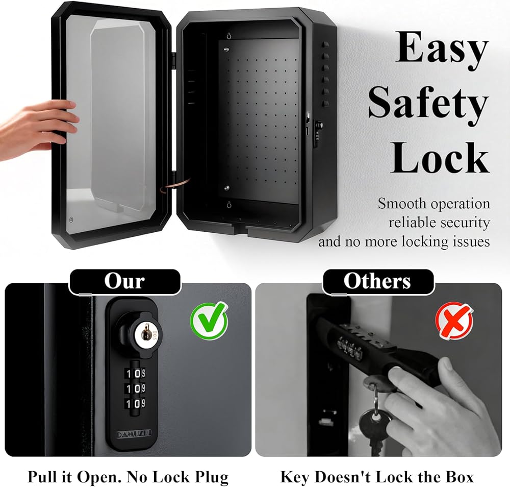 【قفل آمن وأمان معزز】 يمنع القفل الميكانيكي المدمج (مع وظيفة إعادة ضبط المفتاح) الوصول غير المصرح به وسرقة معدات الشحن الخاصة بك. تم تصميم الباب المفصلي القوي عالي القوة ليتحمل الاستخدام اليومي دون ضرر.