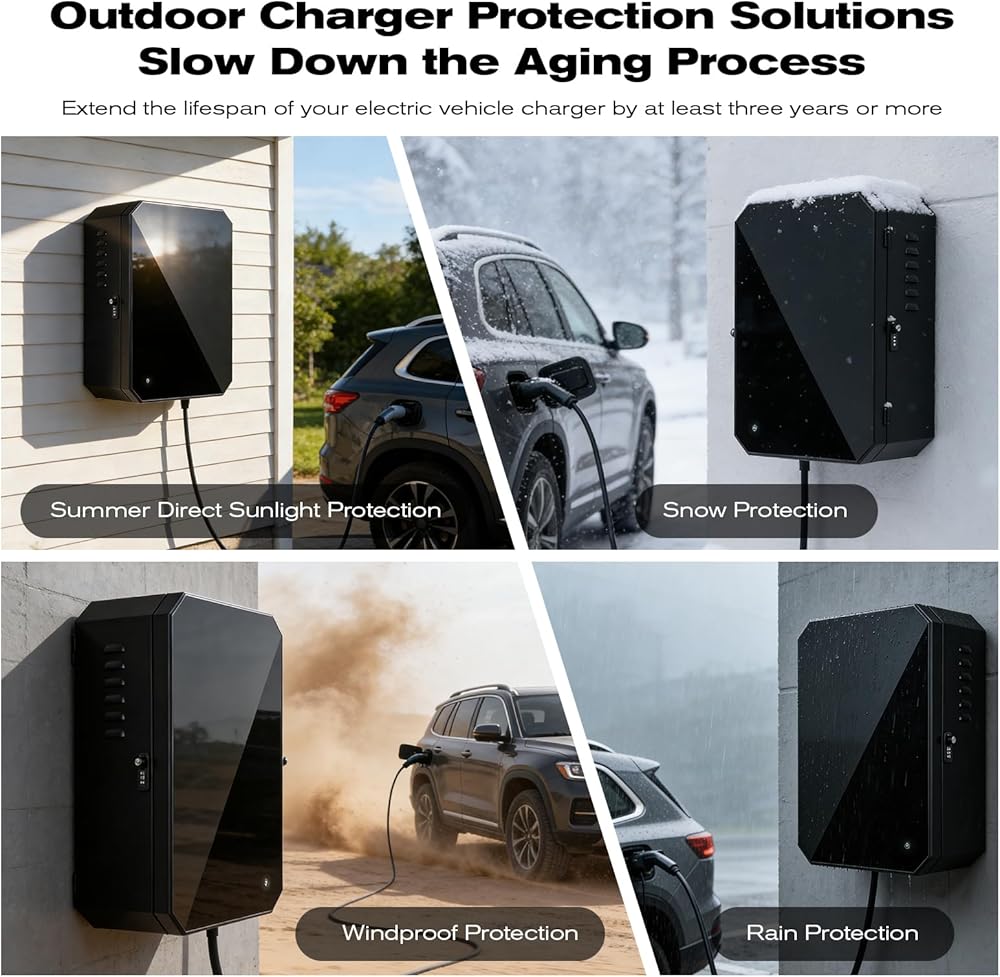 【حماية من جميع الأحوال الجوية وتصميم واسع】 توفر هذه العلبة شديدة التحمل حماية مقاومة للماء والغبار بدرجة IP65 لشاحن EV المنزلي الخاص بك ضد المطر والثلج والشمس والتأثيرات. مقاس 23 × 16 × 9 بوصة، يحتوي الجزء الداخلي الواسع على معظم أجهزة شحن الحائط من المستوى 2 بشكل آمن ويوفر مساحة واسعة لتخزين الكابلات المنظمة، مما يحافظ على إعدادك أنيقًا في الداخل أو الخارج.