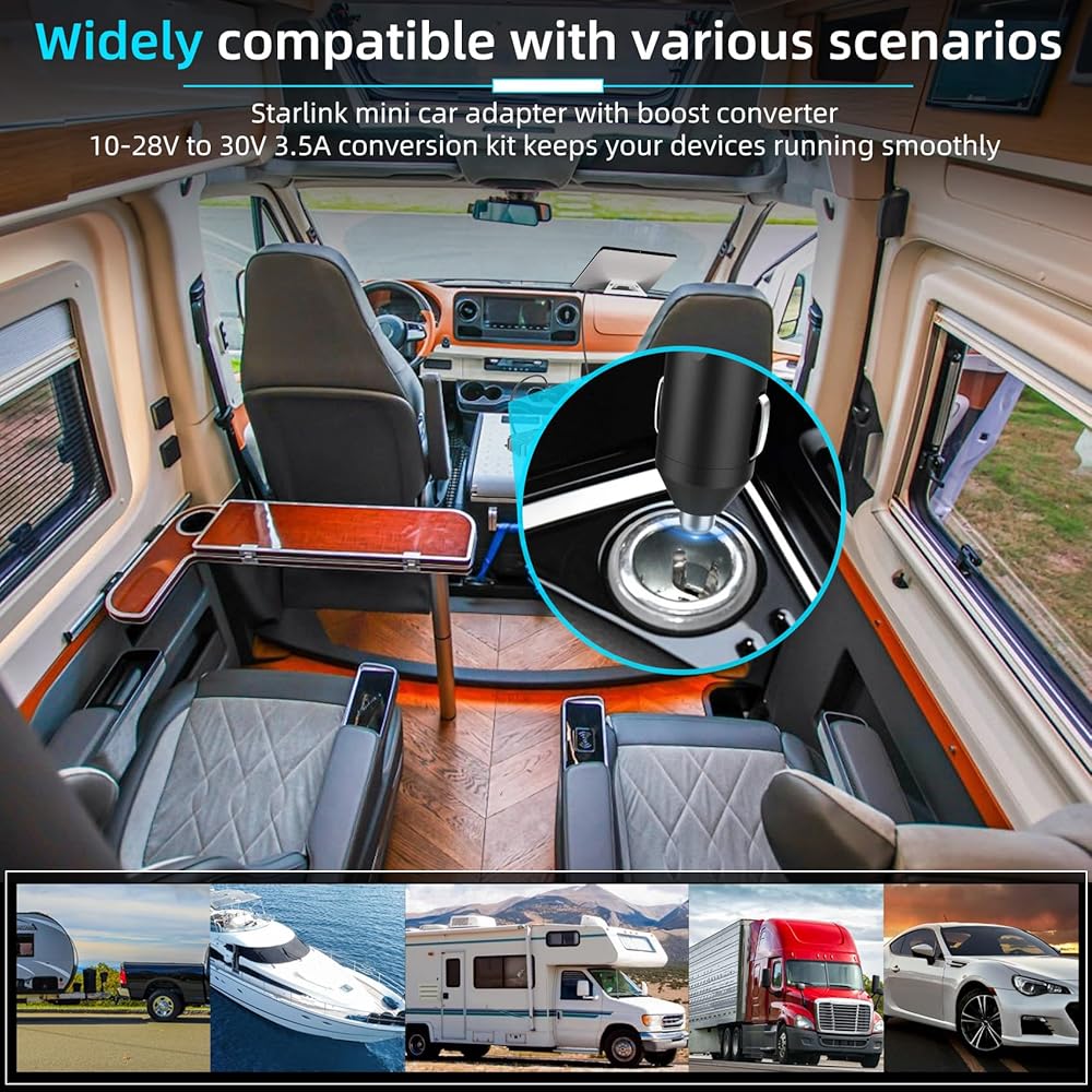 [مطابقة دقيقة] محول طاقة ولاعة السجائر ستارلينك، مدخل 10 فولت - 28 فولت، تحويل ثابت إلى مخرج 30 فولت 3.5 أمبير، مما يضمن التشغيل المستقر لأجهزتك