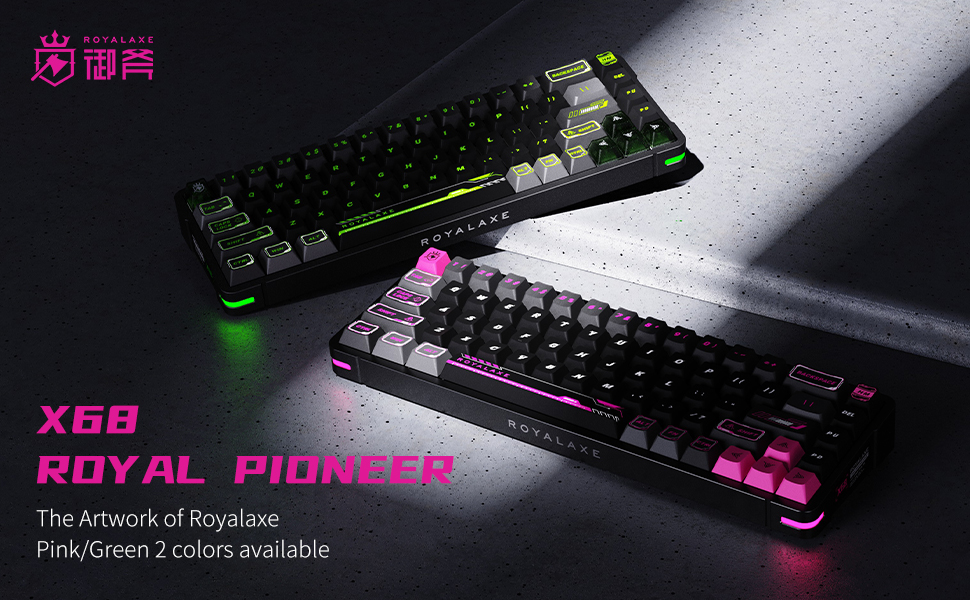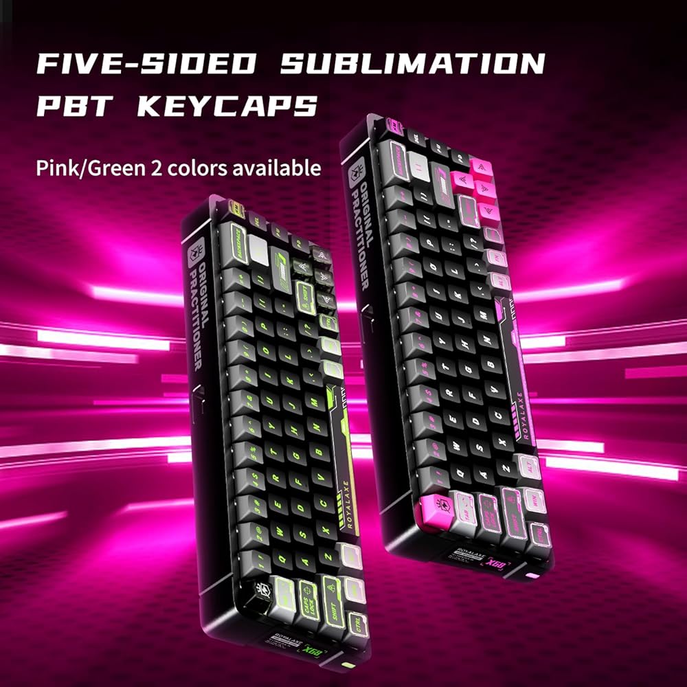 【أغطية مفاتيح PBT بخمسة جوانب】أغطية المفاتيح ذات النمط الميكا التي يستخدمها ROYALAXE X68 مقاومة للاهتراء ومقاومة للزيوت، ومتينة ورقيقة، ومتوفرة بلونين: الوردي والأخضر.