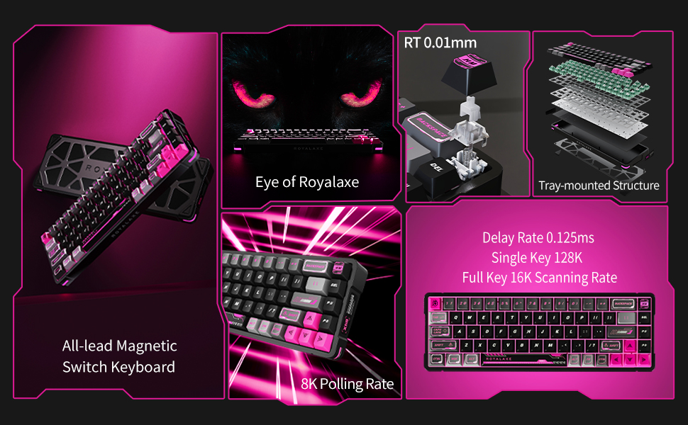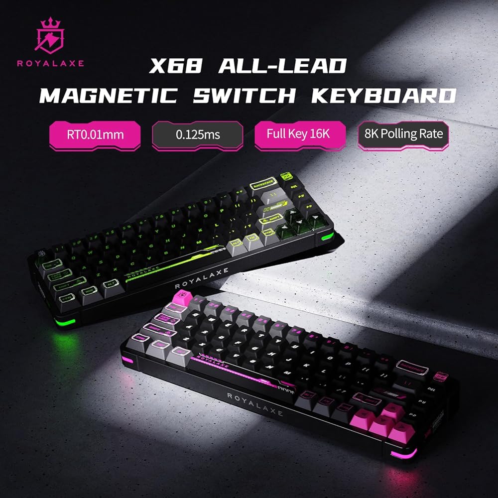 【محرك مخصص للمفتاح المغناطيسي】تحتوي لوحة المفاتيح ROYALAXE X68 على برنامج تشغيل مخصص يدعم برمجة المفاتيح وتحديد الماكرو وتعديل الإضاءة والوظائف الأخرى لتلبية احتياجاتك الشخصية.