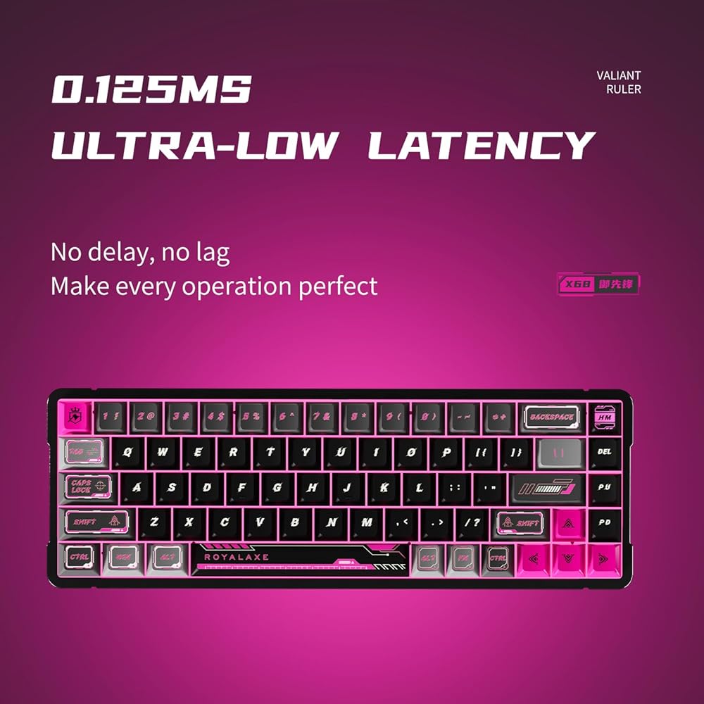 【RGB 16.8 مليون لون】يدعم ROYALAXE X68 أكثر من 20 وضعًا لتأثير الإضاءة، مع سطوع وتردد قابلين للتعديل لتلبية احتياجاتك الشخصية.