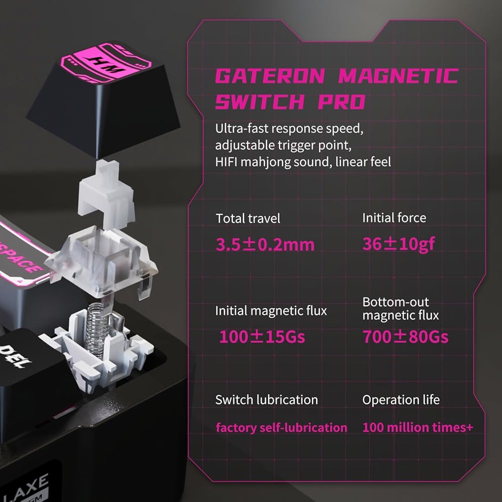 【Gateron Magnetic Switch Pro】ميزاته هي سرعة استجابة فائقة السرعة، ونقطة تشغيل قابلة للتعديل، وصوت HiFi mahjong، وإحساس خطي. هذا هو المفتاح المتطور الذي يجمع بين السرعة والمتانة والتخصيص، وهو مناسب للمستخدمين الذين يسعون للحصول على الأداء النهائي والتجربة الفريدة.