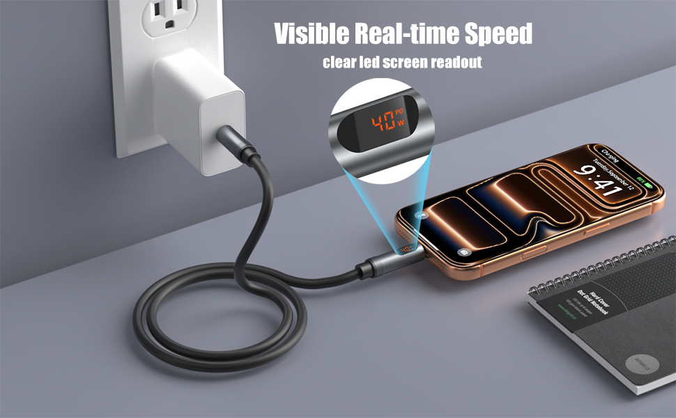 • كابل عرض USB C: تم تصميم هذا الكابل من c إلى c مع شاشة عرض طاقة رقمية LED. يمكنك مراقبة القوة الكهربائية في الوقت الحقيقي في لمحة سهلة. من السهل والمريح التأكد مما إذا كان محول الطاقة قادرًا بالفعل على توفير الطاقة التي يطالب بها.