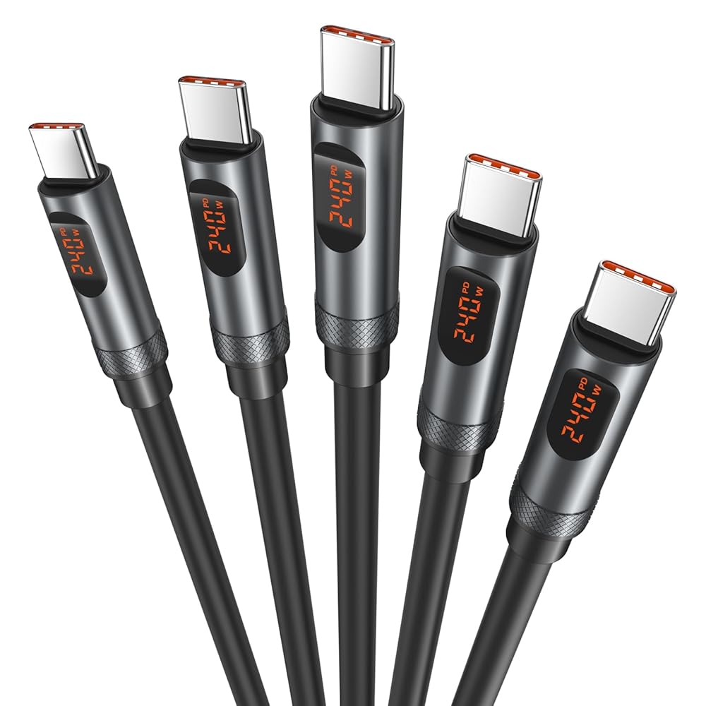 كابل USB C إلى USB C بقوة 240 واط، وشاشة LED بطول 6 أقدام من النوع C وسلك شحن سريع لأجهزة MacBook Pro iPhone 17 16 15 Pro Max Galaxy S25 Ultra iPad - 5 عبوات in Kuwait