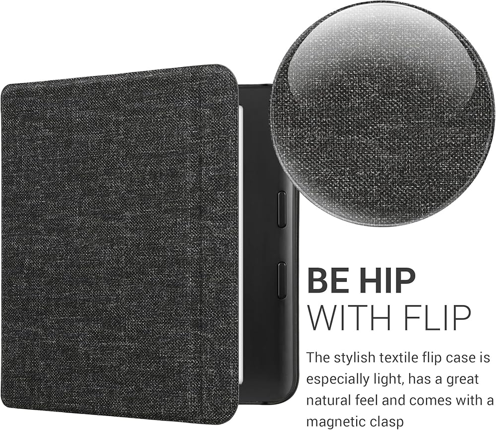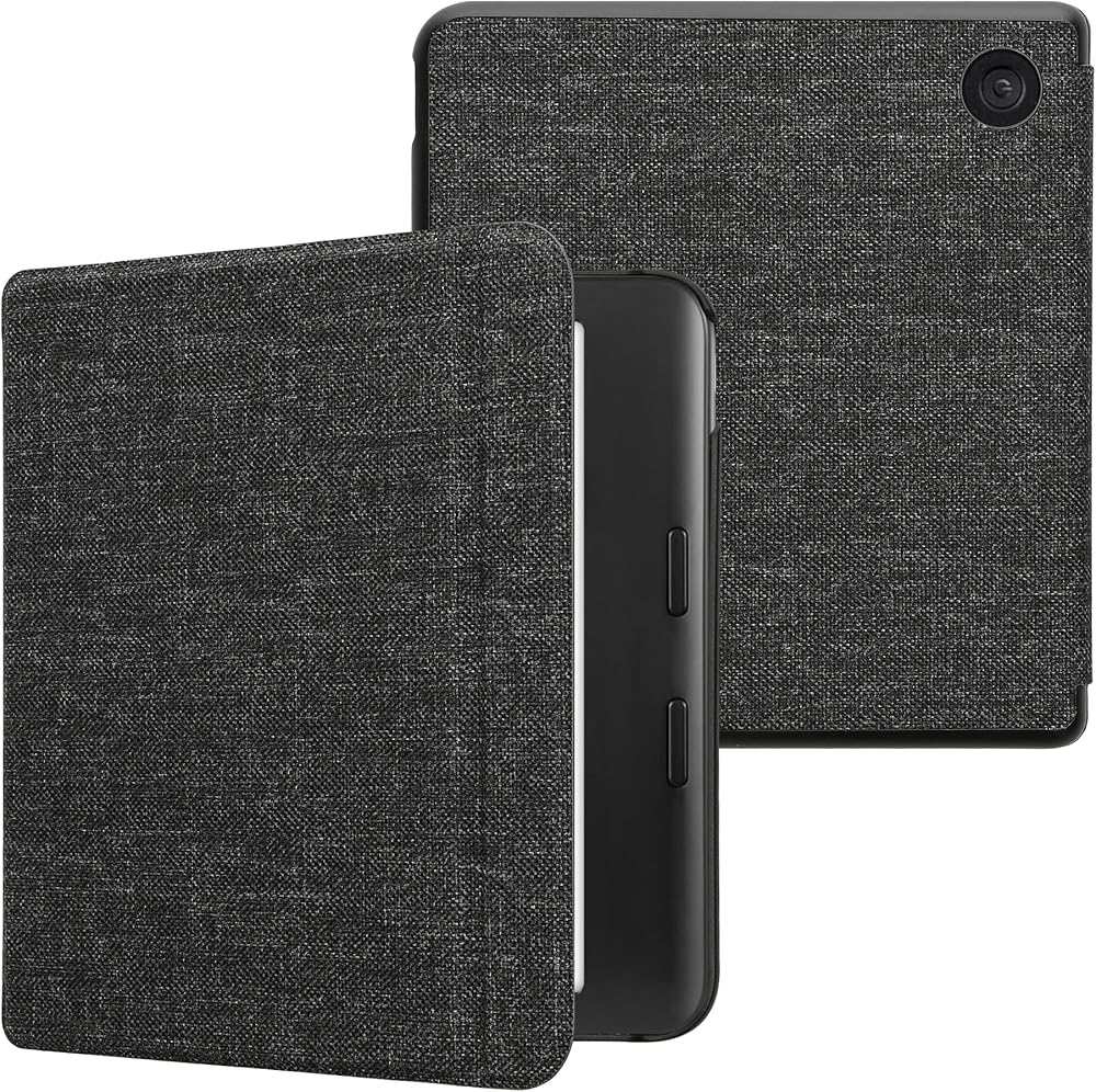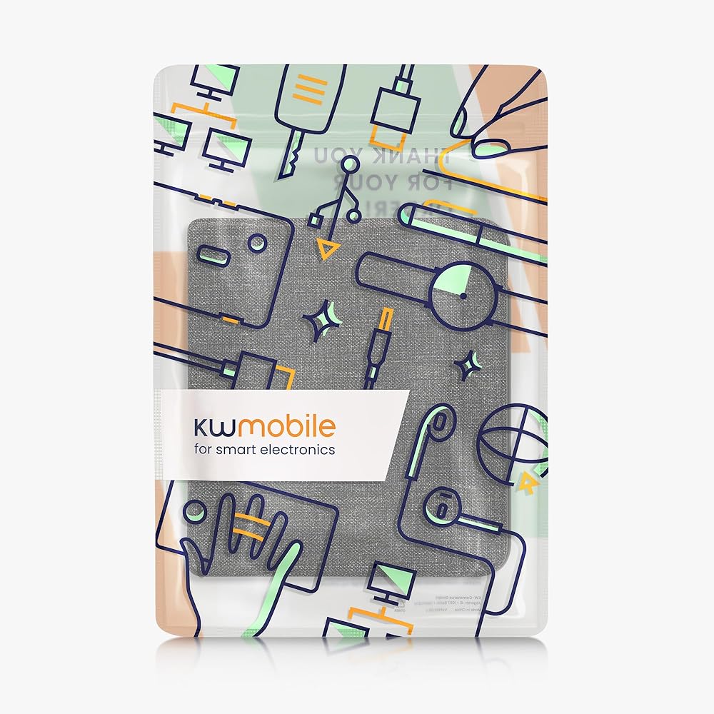 حافظة kwmobile متوافقة مع لون Kobo Libra - غطاء قارئ إلكتروني من القماش بنمط الكتاب - حافظة قابلة للطي - رمادي داكن