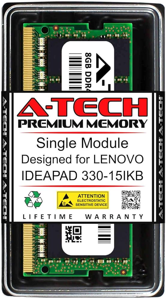ذاكرة الوصول العشوائي A-Tech بسعة 8 جيجابايت لجهاز Lenovo IDEAPAD 330-15IKB | وحدة ترقية الذاكرة DDR4 2400 ميجا هرتز SODIMM PC4-19200 ذات 260 دبوسًا غير متوافقة مع نظام تصحيح الأخطاء (ECC)