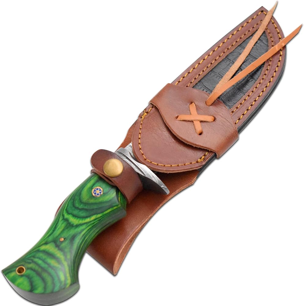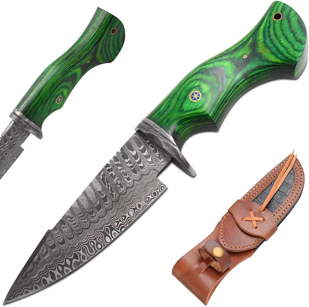 سكين صيد مصنوع يدويًا من الفولاذ الدمشقي ذو نصل ثابت (362)