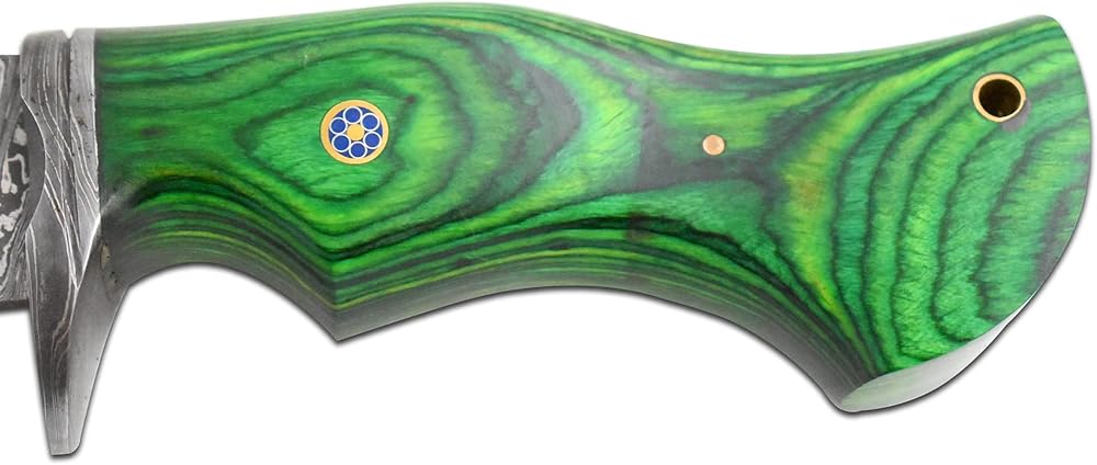 • 5.5 Inches Mosaic Pin Inserted Green Wood Handle With Damascus Spacer.