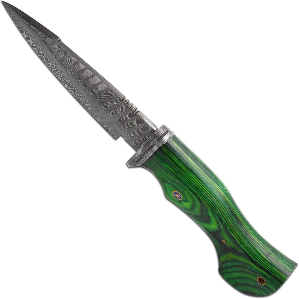 5.5 Inches Mosaic Pin Inserted Green Wood Handle With Damascus Spacer.