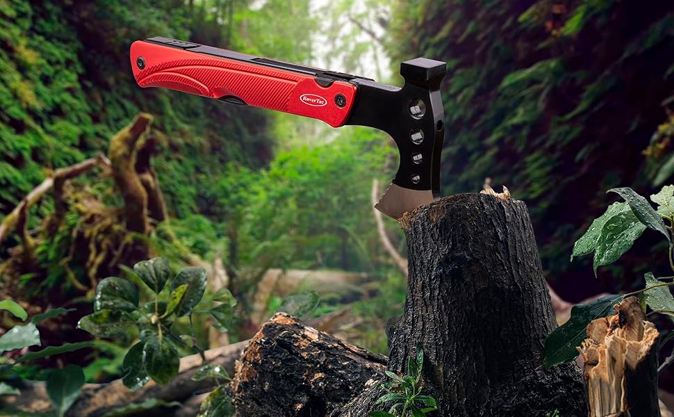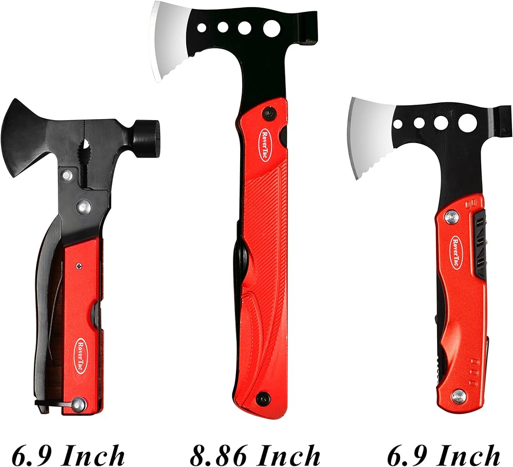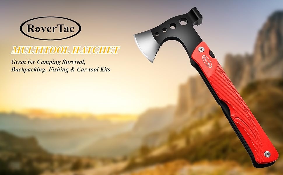 RoverTac التخييم الفأس متعددة المهام البقاء على قيد الحياة والعتاد، 14 في 1 أداة متعددة الفأس المطرقة سكين المنشار فتاحة زجاجات النار بداية صافرة، هدايا للرجال أبي له، مثالية للتخييم البقاء على قيد الحياة المشي لمسافات طويلة الصيد