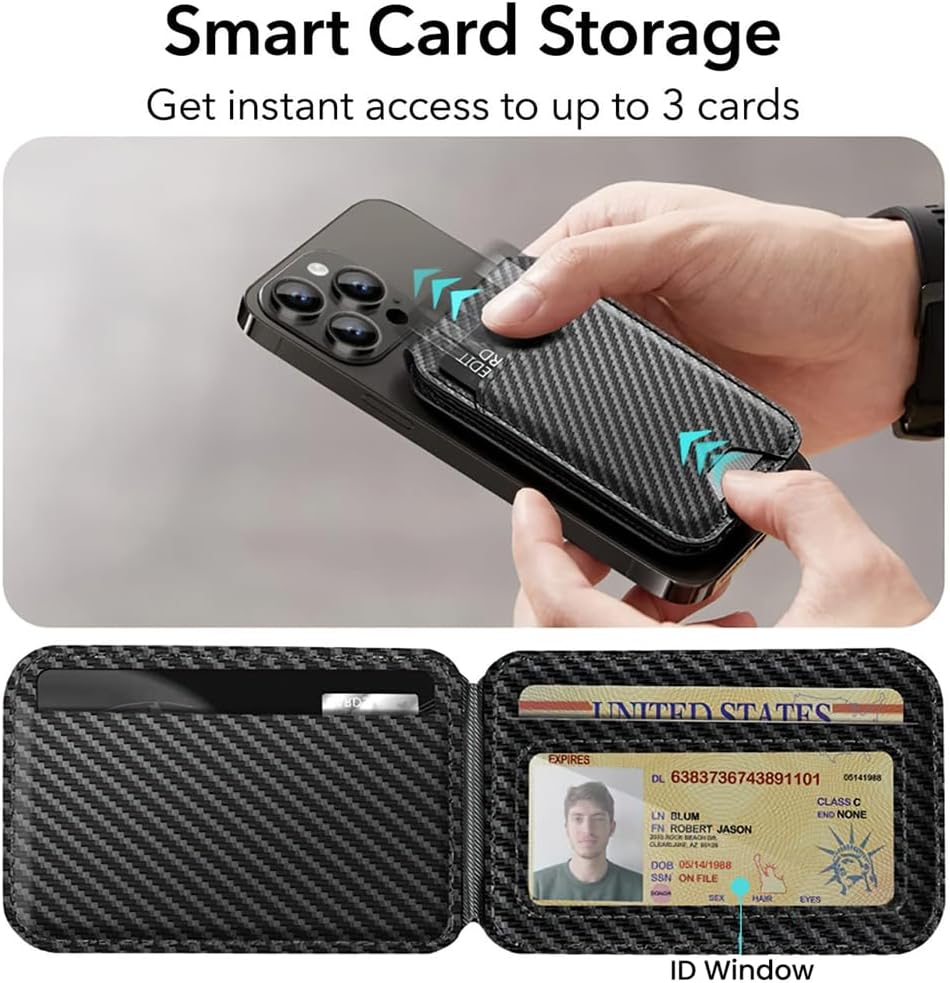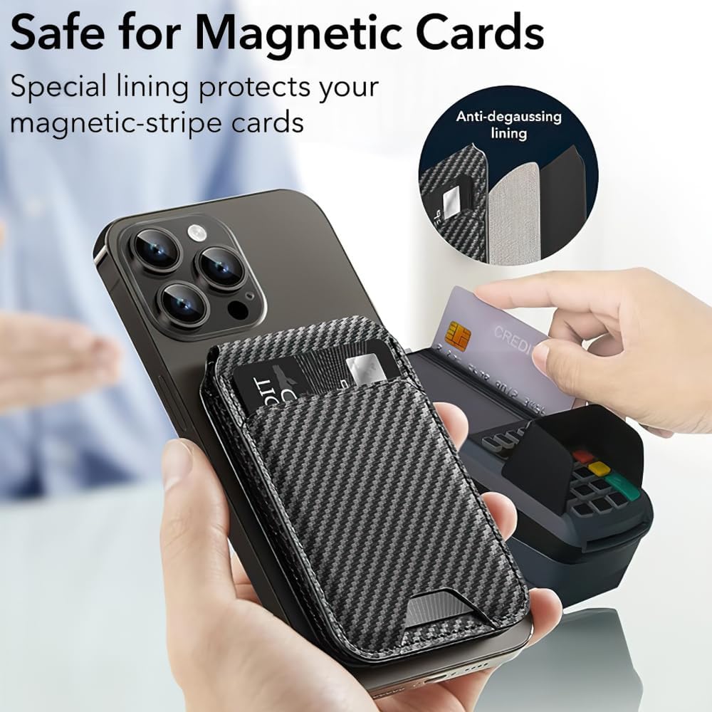 • Versatile Magnetic Wallet: New up-grade of mag-safe wallet is designed for iPhone 17/16/15/14/13/ 12 Series. Functions as a phone wallet and a cell phone stand for a desk. Fits max 6cards and is convenient for when you're checking out or trying to put things up quickly. With a stylish design, and doesn't add any bulk to your phone, which is great if you're looking for a compact way to carry your essentials
