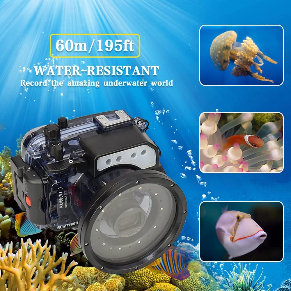 حافظة احترافية للكاميرا تحت الماء متوافقة مع كاميرا Sony RX100 VII، مقاومة للماء حتى عمق 60 مترًا/195 قدمًا، مع أزرار تحكم، وقفل أمان (YH-RX100 VII)