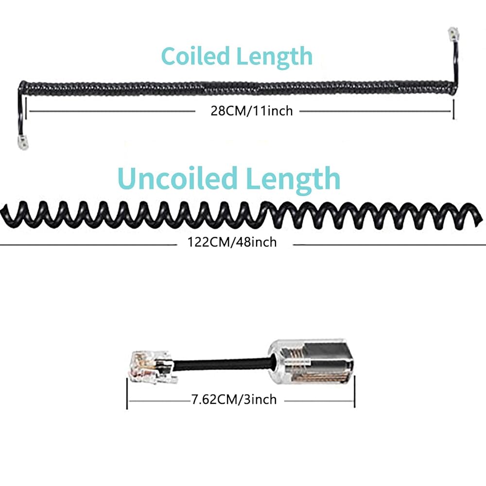【Telephone Handset Cord & Cord Detangler】These telephone handset cords and telephone handset cord untanglers work with all standard RJ9 telephone line, 4P4C gague handset coiled cord. But NOT suitable for VOIP phone and RJ45 modular plug.