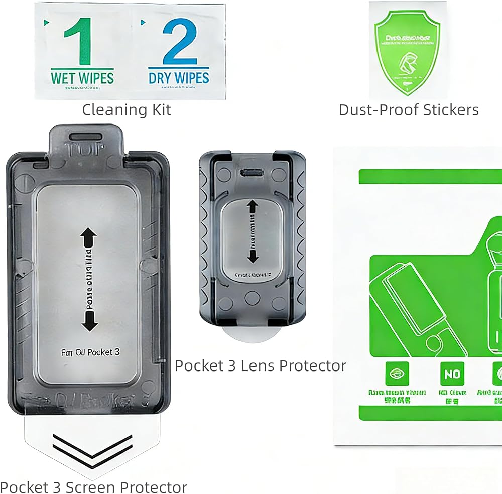 • ✅Package Contents: Screen Protector + Lens Protector + Installation Kit (Compatible with DJI Osmo Pocket 3), Cleaning Kit, and Dust-Proof Stickers.