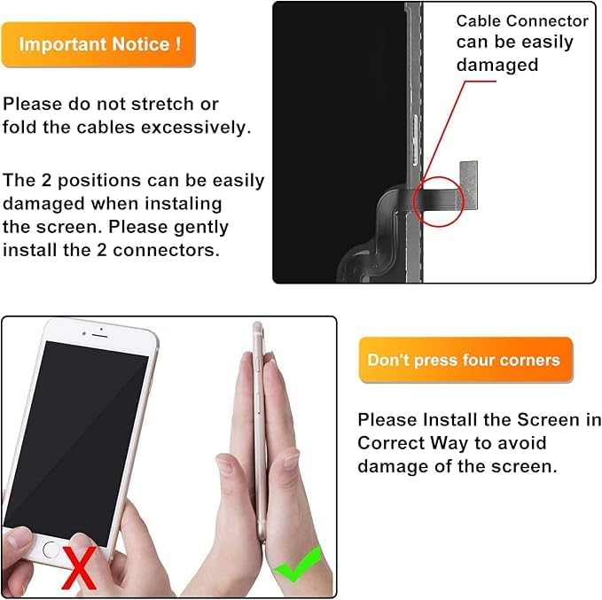 فقط شاشة iPhone ومجموعة التحويل الرقمي، لا تشمل سماعة الأذن ومجموعة المستشعر ولوحة درع LCD المعدنية الرفيعة، يرجى نقلها من شاشتك الأصلية إلى الشاشة الجديدة.