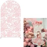 غطاء خلفي على شكل قوس من الزهور الوردية لحفلات أعياد الميلاد على الوجهين وحامل من قماش اللدنة يغطي الفتيات وحفلات استقبال المولود الجديد (غطاء 4 × 7.2 قدم، G4029) in Kuwait