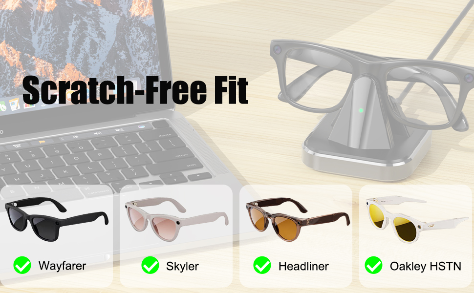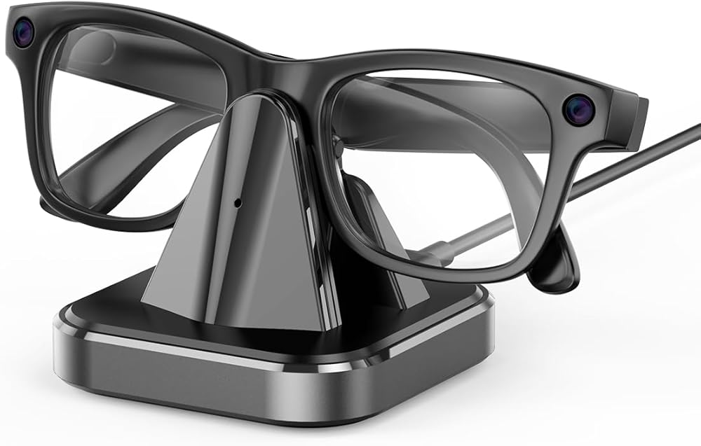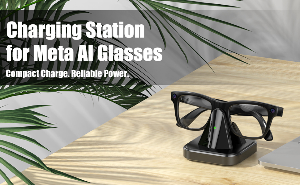 قاعدة شحن لنظارات Ray-Ban Meta الذكية، حامل شاحن محمول متوافق مع Wayfarer، Headliner، Skyler، HSTN، محطة شحن للسفر مع مؤشر LED، سبيكة مع قاعدة مرجحة غير قابلة للانزلاق