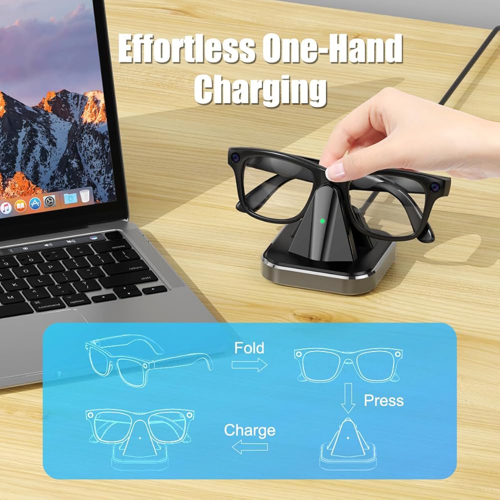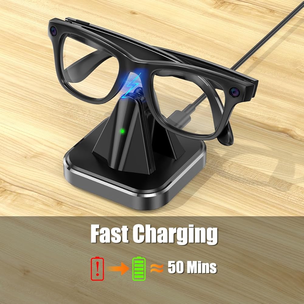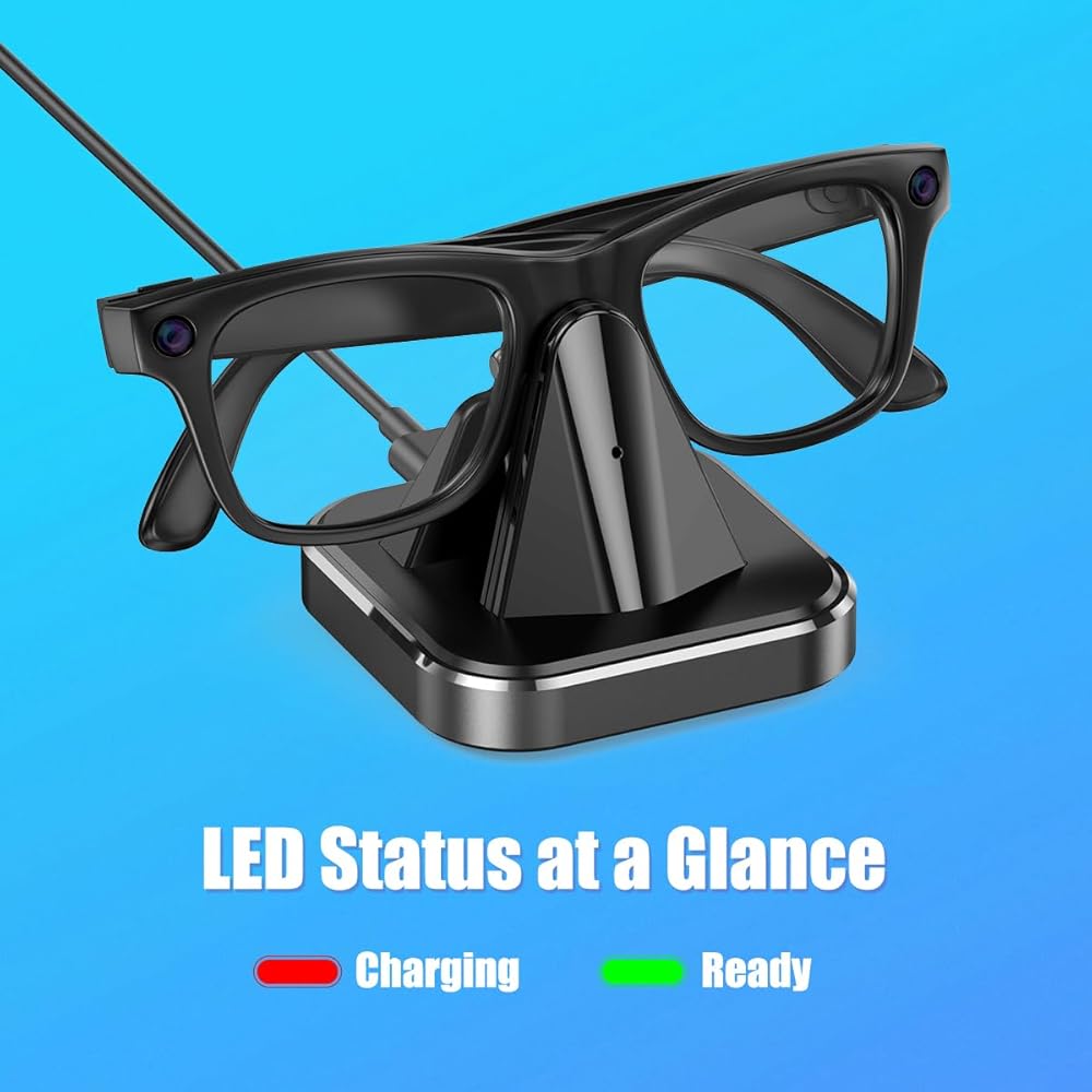 مؤشر شحن LED لتحديثات الحالة الواضحة يتميز بمؤشر LED بديهي يعرض تقدم الشحن في الوقت الحقيقي (أحمر للشحن، أخضر للشحن الكامل). يمكنك مراقبة حالة بطارية نظارتك بسهولة وتجنب الشحن الزائد أو الشحن غير الكامل.